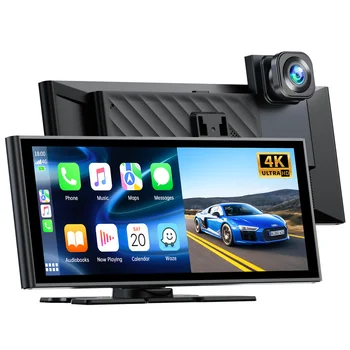 • 9.26 Inch Wireless Car Stereo with Carplay Screen & Android Auto, 4K Dash Cam and 1080P FHD Backup Camera, GPS Navigation